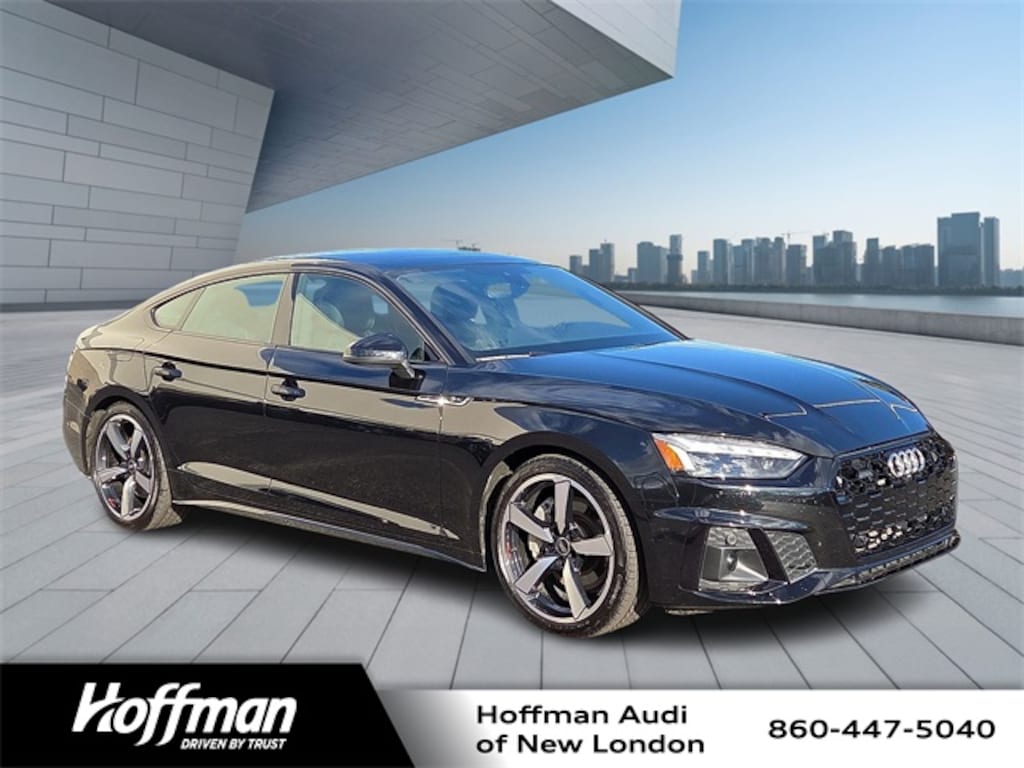 Certified. Black 2025 Audi A5 Sportback 45 S line Premium Plus quattro quattro 7-Speed Automatic S tronic 2.0L 4-Cylinder TFSI RECENT HOFFMAN TRADE, AUDI CERTIFIED, SERVICE RECORDS AVAILABLE, ONE OWNER, SUNROOF MOONROOF, REMAINDER OF FACTORY WARRANTY, 6 MONTH OR 6,000 POWERTRAIN WARRANTY, Alarm System with Motion Sensor, Audi Advanced Key, Audi Connect NAV and PLUS, Audi MMI Navigation Plus, Audi Side Assist with Pre Sense Rear, Audi Virtual Cockpit Plus, Auto-Dimming Power Folding Exterior Mirrors, Bang & Olufsen Sound System with 3D Sound, Leatherette Covered Center Console and Door Armrests, LED Interior Lighting Plus Package, Memory For Driver's Seat, Premium Plus, SiriusXM with 360L, Top View Camera System, Traffic Sign Recognition, Wheels: 19" 5-Arm-Cutter Design Bi-Color Finish, Wireless Phone Charging Pad.