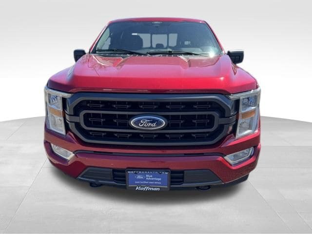 *Ford Certified*, F-150 XLT, 5.0L V8, Rapid Red Metallic Tinted Clearcoat, 4-Wheel Disc Brakes, 6 Speakers, 8-Way Power Driver's Seat w/Power Lumbar, 8" Productivity Screen in Instrument Cluster, ABS brakes, Accent-Color Step Bars, Air Conditioning, AM/FM radio, Auto High-beam Headlights, Auto-Dimming Rear-View Mirror, Black 2-Bar Style Grille w/Black Surround/Accents, Body-Color Door & Tailgate Handles, Body-Color Front & Rear Bumpers, Box Side Decals, Brake assist, Chrome Single-Tip Exhaust, Class IV Trailer Hitch Receiver, Compass, Connected Built-In Navigation, Delay-off headlights, Driver door bin, Driver vanity mirror, Dual front impact airbags, Dual front side impact airbags, Dual Zone Automatic Temperature Control, Electronic Stability Control, Emergency communication system: SYNC 4 911 Assist, Equipment Group 301A Mid, Extended Range 36 Gallon Fuel Tank, Exterior Parking Camera Rear, Front anti-roll bar, Front Center Armrest w/Storage, Front fog lights, Front reading lights, Front wheel independent suspension, Fully automatic headlights, Hard Folding Tonneau Pickup Box Cover, Integrated Trailer Brake Controller, Leather-Wrapped Steering Wheel, Low tire pressure warning, Max Trailer Tow Package, Occupant sensing airbag, Onboard 400W Outlet, Outside temperature display, Overhead airbag, Overhead console, Panic alarm, Passenger door bin, Passenger vanity mirror, Power Glass Heated Sideview Mirrors, Power steering, Power windows, Power-Sliding Rear Window, Pro Trailer Backup Assist, Radio data system, Radio: AM/FM SiriusXM w/360L, Radio: AM/FM Stereo w/6 Speakers, Rear reading lights, Rear Under-Seat Storage, Rear window defroster, Remote keyless entry, SecuriCode Drivers Side Keyless-Entry Keypad, Security system, Speed-sensing steering, Split folding rear seat, Steering wheel mounted audio controls, SYNC 4, SYNC 4 w/Enhanced Voice Recognition, Tachometer, Telescoping steering wheel, Tilt steering wheel, Traction control, Tray Style Floor Liner (47W), Trip computer, Variably intermittent wipers, Wheels: 18" 6-Spoke Machined Aluminum, XLT Sport Appearance Package.
