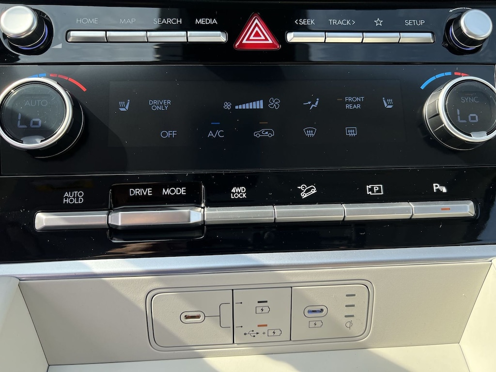 I’ve had my 2025 Santa Fe Hybrid Limited since December and I’m coming up on 12,000 miles. It does a lot right. It looks good, drives well, and hauls everything I need. But there are a few odd choices and oversold features that hold it back from being great. The new boxy design stands out. Rockwood Green turns heads, and the cabin feels clean and upscale. The infotainment system is excellent, responsive, well laid out, and easy to use. The digital driver display, on the other hand, is limited. You can’t get a map view or much customization, which feels like a missed opportunity. I wasn’t expecting a luxury SUV for 43 grand, but this part could have been better with minimal effort. I originally wanted the black wheels and exterior styling of the Calligraphy trim, but it forced me into either black or white interior and second-row captain’s chairs. That didn’t work for me. With two idiot mastiffs and a kid to haul around, I needed the bench seat and a tan interior. The Limited was the only way to get a practical setup that fit my life, even if I had to give up some of the higher-end styling. Ride quality is firm but controlled. The hybrid powertrain handles highway driving and passing without struggle, even with the vehicle fully loaded. Visibility is great, and the cargo space is fantastic. The seats fold totally flat, and I’ve had no issue packing in dogs, golf clubs, and everything else. The third row is tight, but it works for short trips or smaller passengers. The stock audio system is weak. I had to add a sub to get anything approaching decent bass, which is disappointing for something with “Bose” audio. The biggest frustration is the cruise control. It will not function properly if you are wearing sunglasses in Colorado sun. It throws warnings and disables itself until you take them off. That makes it useless in exactly the conditions where I wanted it most. Fuel economy has also been underwhelming. It was advertised at 34 to 35 miles per gallon, but I have never hit 30. I average around 25 to 28 per tank. It is better than a traditional gas SUV, but it is nowhere near what Hyundai claimed. There is no spare tire. You get a flat repair kit, which is better than nothing, but not ideal in a family SUV designed for road trips. In the end, I still like it. For the price, I got what I expected, and in a market where everything is overpriced, I am not unhappy. But the cruise control issue, weak audio, limited screen customization, and inflated mileage figures keep it from being a five-star vehicle.