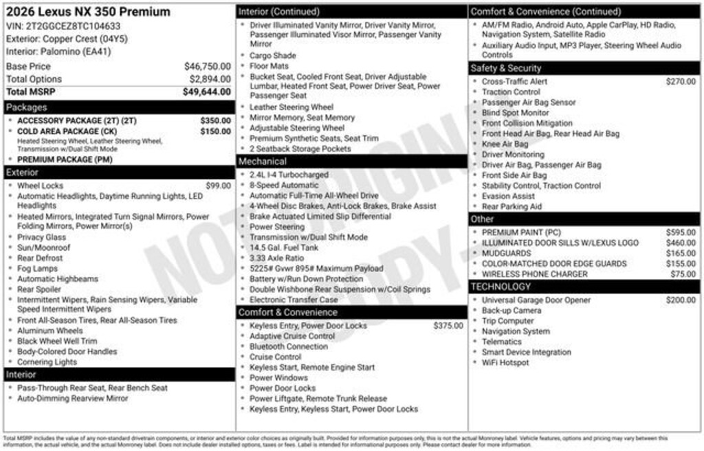 - Thematic ambient illumination; lexus interface with 14.0-in touchscreen display. Drive connect with cloud navigation, intelligent assistant and destination assist. 4g network dependent.$1,205