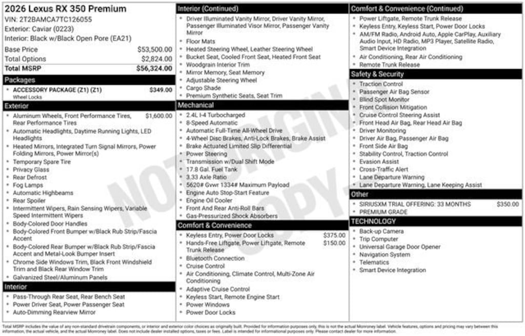 2026 Lexus RX 350 Premium 350 Premium