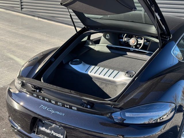 Jet Black Metallic 2025 Porsche 718 Cayman RWD 6-Speed Manual 2.0L Turbocharged Alloy wheels, Electronic Stability Control, Front dual zone A/C, Heated door mirrors, Heated front and rear seats, Illuminated entry, Low tire pressure warning, Porsche Ceramic Composite Brake (PCCB), Porsche Communication Management, Remote keyless entry, Traction control.