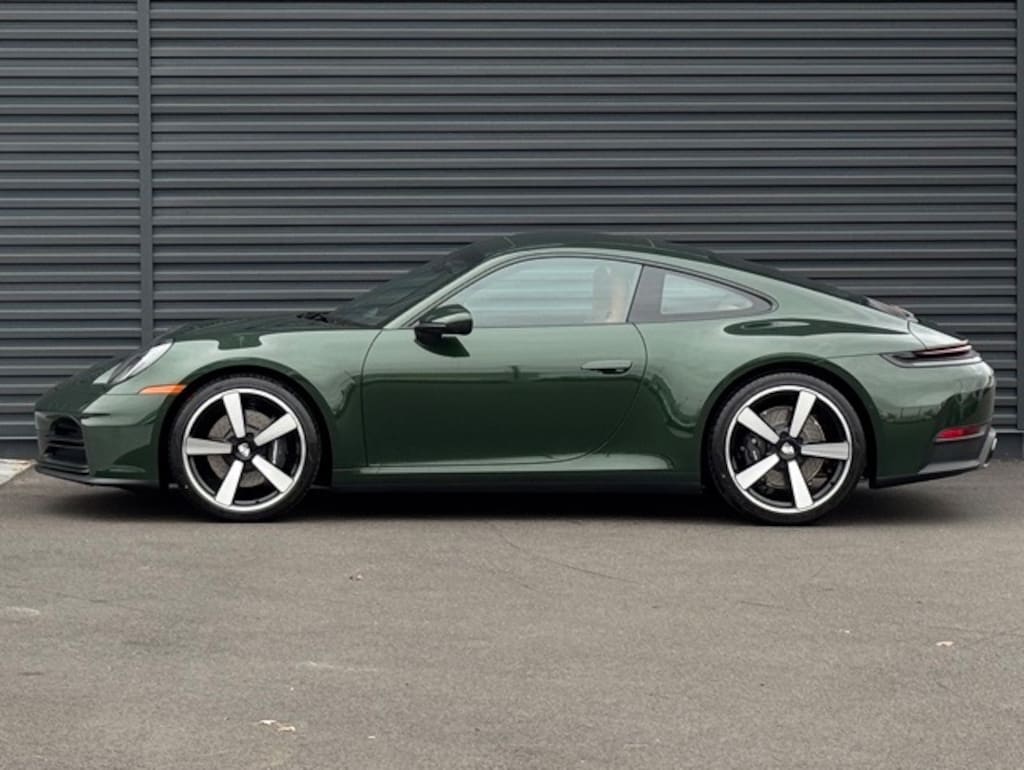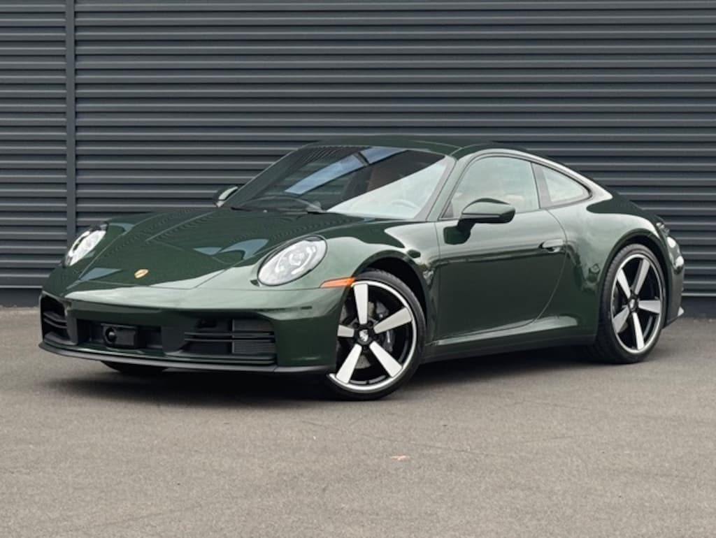 Oak Green Metallic Neo 2026 Porsche 911 Carrera RWD 8-Speed Porsche Doppelkupplung (PDK) 3.0L H6 Turbocharged DOHC 24V LEV3-ULEV70 388hp 18-Way Adaptive Sport Seats Plus w/Memory Package, Adaptive Cruise Control (ACC), BOSE Surround Sound System, Center Console Lid w/Model Designation, Electric Slide/Tilt Sunroof, Front Axle Lift System, Front Ventilated Seats, Heated GT Sport Steering Wheel in Leather (2PJ), Illuminated Bespoke Brushed Alum Door Sill Guards, Ionizer, Lane Change Assist (LCA), Model Designation on Rear in Exterior Color, Navigation system: Porsche Communication Management (PCM), Premium Package with Remote ParkAssist, Preparation for Front & Rear Porsche Dashcam, Rear Lid Grille Vert Slat Inlays in Exterior Color, Rear Seats, Remote ParkAssist, Sport Chrono Package, Sport Exhaust System w/Tailpipes in Black, Storage Net in Passenger Footwell, Wheels: 20" Front/21" Rear Carrera Classic.