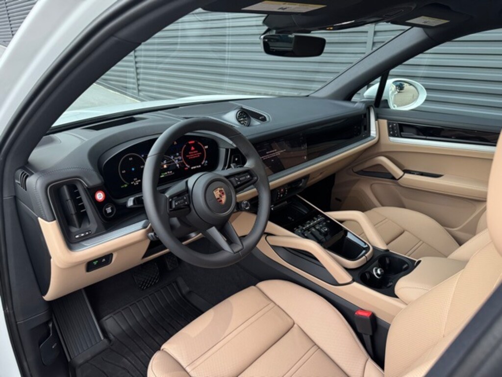 Carrara White Metallic 2026 Porsche Cayenne E-Hybrid AWD 8-Speed Automatic with Tiptronic 3.0L V6 Plug-In Hybrid Turbocharged 3.0L V6 Plug-In Hybrid Turbocharged, 4-Zone Climate Control, Alloy wheels, BOSE Surround Sound System, Compass, Electronic Stability Control, Embossed Leather Seat Trim, Exclusive Design Fuel Cap, Front dual zone A/C, Front Ventilated Seats, HD-Matrix Design LED Headlights, Head-Up Display, Heated door mirrors, Heated front and rear seats, Illuminated entry, Low tire pressure warning, Navigation System, Panoramic Roof System, Porsche Ceramic Composite Brake (PCCB), Porsche Communication Management, Power Liftgate, Premium Package Plus, Rear Heated Seats, Remote keyless entry, Traction control, Under Door Puddle Light Projectors, Wheels: 21" RS Spyder Design, Window Trim in High Gloss Black.