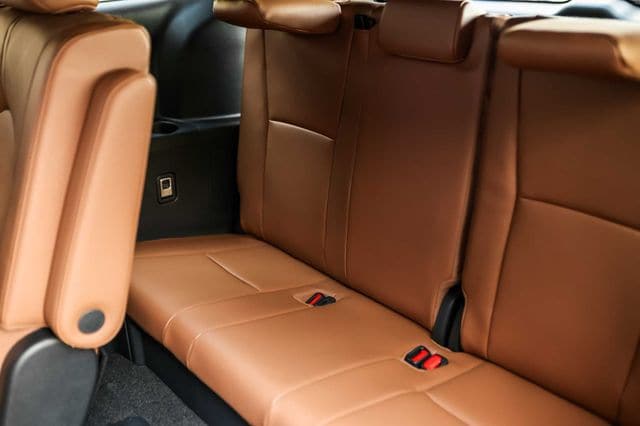 - 7-passenger seating with second-row fold-down captain's chairs and fold-down inboard armrests, adjustable headrests and two cup holders mounted on the floor; and 60/40 split, fold-flat third-row seats with sliding headrests and recline function.