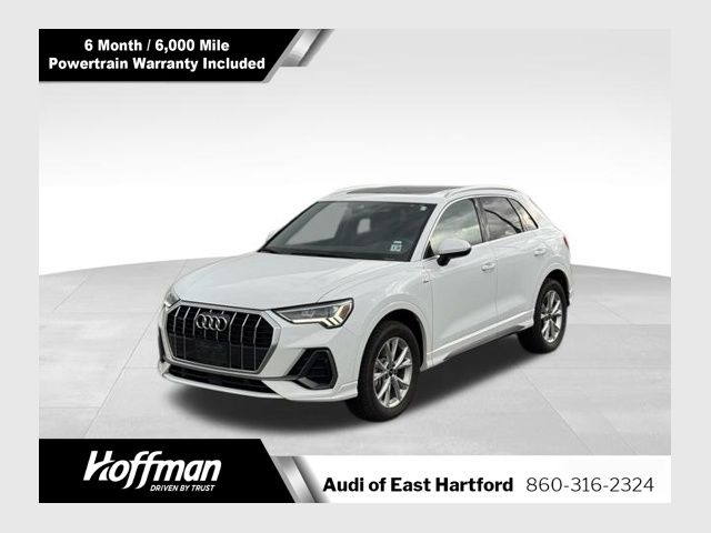 ONE OWNER, CLEAN CARFAX...NO ACCIDENTS, SUNROOF MOONROOF, 6 MONTHS/6000 MILES POWERTRAIN WARRANTY, 10 Speakers, 4-Wheel Disc Brakes, ABS brakes, Air Conditioning, Alloy wheels, AM/FM radio, Audi smartphone interface (Apple CarPlay/Android Auto), Auto High-beam Headlights, Automatic temperature control, Brake assist, Bumpers: body-color, Delay-off headlights, Driver door bin, Driver vanity mirror, Dual front impact airbags, Dual front side impact airbags, Electronic Stability Control, Emergency communication system: Audi connect CARE, Exterior Parking Camera Rear, Four wheel independent suspension, Front anti-roll bar, Front Bucket Seats, Front Center Armrest, Front dual zone A/C, Front fog lights, Front reading lights, Fully automatic headlights, Heated door mirrors, Heated Front Bucket Seats, Heated front seats, Illuminated entry, Knee airbag, Leather Seating Surfaces, Leather Shift Knob, Leather steering wheel, Low tire pressure warning, Occupant sensing airbag, Outside temperature display, Overhead airbag, Overhead console, Panic alarm, Passenger door bin, Passenger vanity mirror, Power door mirrors, Power driver seat, Power Liftgate, Power moonroof: Panoramic, Power passenger seat, Power steering, Power windows, Radio data system, Radio: Audi Sound System, Rain sensing wipers, Rear air conditioning, Rear anti-roll bar, Rear reading lights, Rear seat center armrest, Rear window defroster, Rear window wiper, Remote keyless entry, Speed control, Speed-sensing steering, Split folding rear seat, Spoiler, Steering wheel mounted audio controls, Tachometer, Telescoping steering wheel, Tilt steering wheel, Traction control, Trip computer, Turn signal indicator mirrors, Variably intermittent wipers, Wheels: 18" 5-V-Spoke-S Design. CARFAX One-Owner. Clean CARFAX. Glacier White Metallic 2025 Audi Q3 Premium S Line quattro quattro 8-Speed Automatic with Tiptronic 2.0L 4-Cylinder TFSI