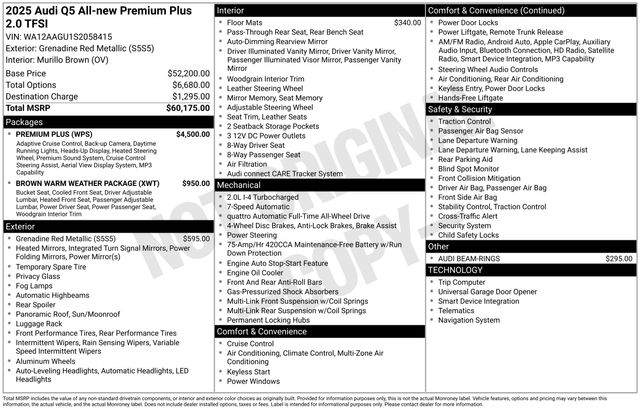 Red 2025 Audi Q5 2.0T Premium Plus quattro quattro 7-Speed Automatic S tronic 2.0L 4-Cylinder TFSI