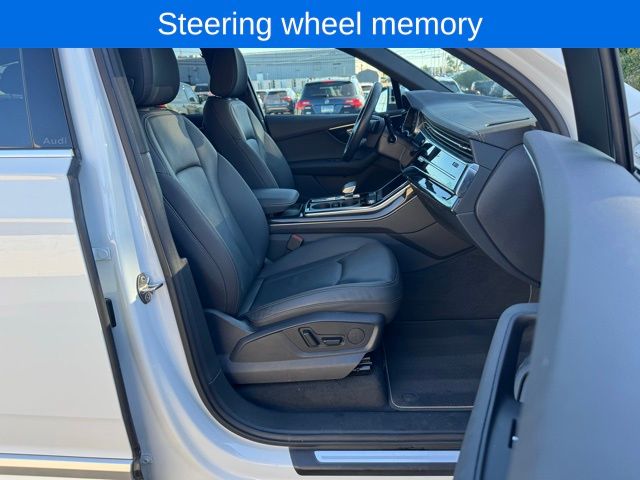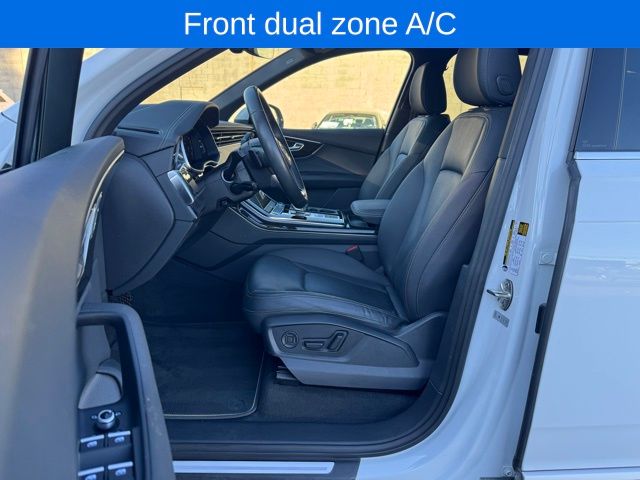 Q7 45 Premium quattro, Glacier White, 10 Speakers, 3rd row seats: bench, 4-Wheel Disc Brakes, 7-Pin Adapter, ABS brakes, Air Conditioning, AM/FM radio: SiriusXM w/360L, Audi Beam Rings, Audi Guard Protection Kit, Auto High-beam Headlights, Auto-dimming door mirrors, Auto-dimming Rear-View mirror, Automatic temperature control, Brake assist, Bumpers: body-color, Compass, Convenience Package, Delay-off headlights, Driver door bin, Driver vanity mirror, Dual front impact airbags, Dual front side impact airbags, Electronic Stability Control, Emergency communication system: Audi connect CARE, Exterior Parking Camera Rear, Four wheel independent suspension, Front anti-roll bar, Front Bucket Seats, Front Center Armrest, Front dual zone A/C, Front fog lights, Front reading lights, Fully automatic headlights, Garage door transmitter: HomeLink, Genuine wood door panel insert, Heated door mirrors, Heated Front Bucket Seats, Heated front seats, Heated Steering Wheel, Illuminated entry, Leather Seating Surfaces, Leather Shift Knob, Leather steering wheel, Low tire pressure warning, Memory seat, Navigation System, Occupant sensing airbag, Outside temperature display, Overhead airbag, Overhead console, Panic alarm, Passenger door bin, Passenger vanity mirror, Power door mirrors, Power driver seat, Power Liftgate, Power moonroof: Panoramic, Power passenger seat, Power steering, Power windows, Privacy Trunk Cover, Radio data system, Radio: Audi Sound System, Rain sensing wipers, Rear air conditioning, Rear anti-roll bar, Rear fog lights, Rear reading lights, Rear seat center armrest, Rear side impact airbag, Rear window defroster, Rear window wiper, Reclining 3rd row seat, Remote keyless entry, Security system, Speed-sensing steering, Split folding rear seat, Spoiler, Steering wheel memory, Steering wheel mounted audio controls, Tachometer, Telescoping steering wheel, Tilt steering wheel, Top View Camera System, Traction control, Trailer Hitch, Trip computer, Turn signal indicator mirrors, Wheels: 20" 5-Double-Spoke, Wireless Phone Charging Pad.