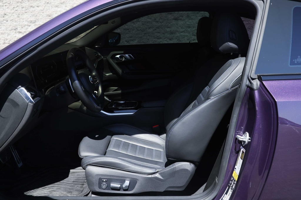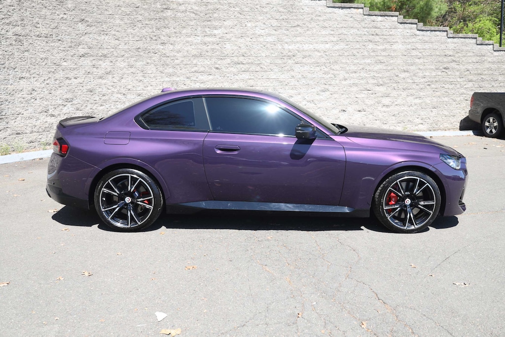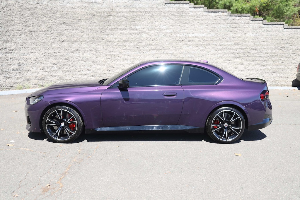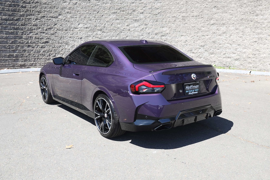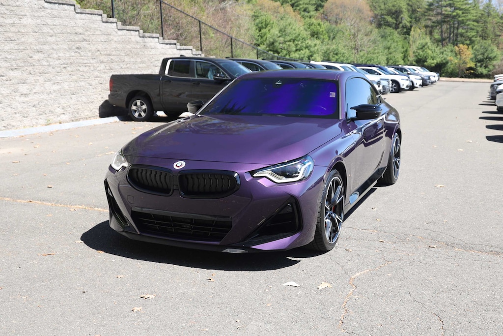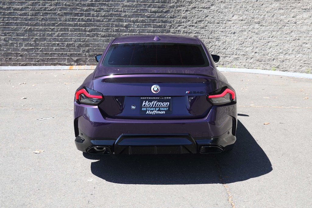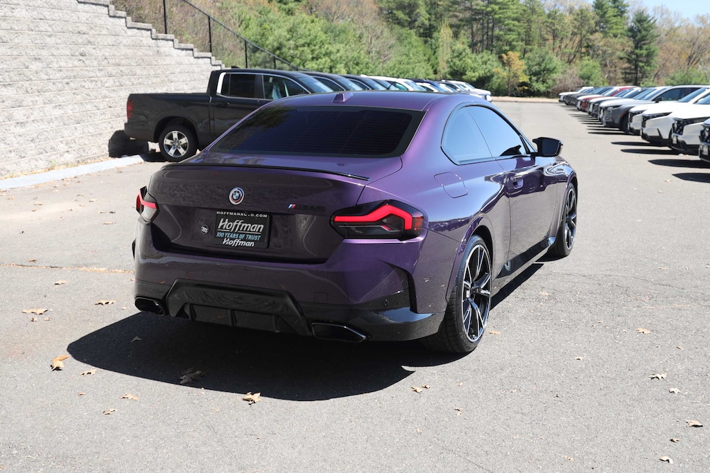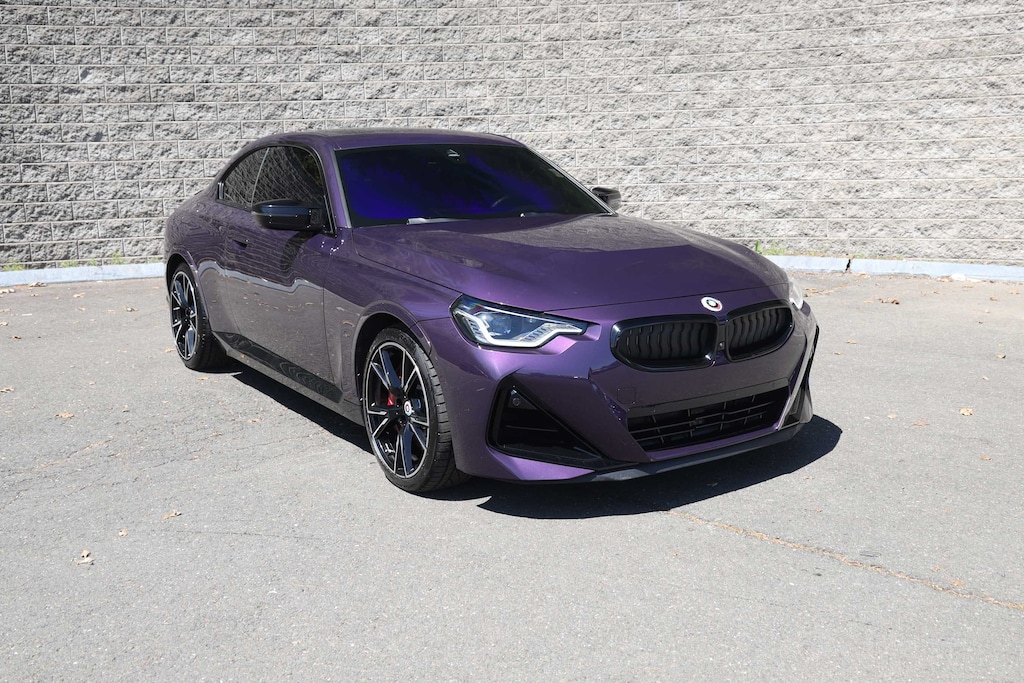 Elevate your driving experience with this stunning 2023 BMW 2 Series M240i. This high-performance coupe boasts a captivating Thundernight Metallic Purple exterior, complemented by a sleek and sporty Black Vernasca leather interior with blue stitching. Beneath the hood, you'll find a potent 3.0-liter inline 6-cylinder engine paired with an 8-speed automatic transmission and BMW's renowned xDrive all-wheel-drive system, delivering an exhilarating 382 horsepower.