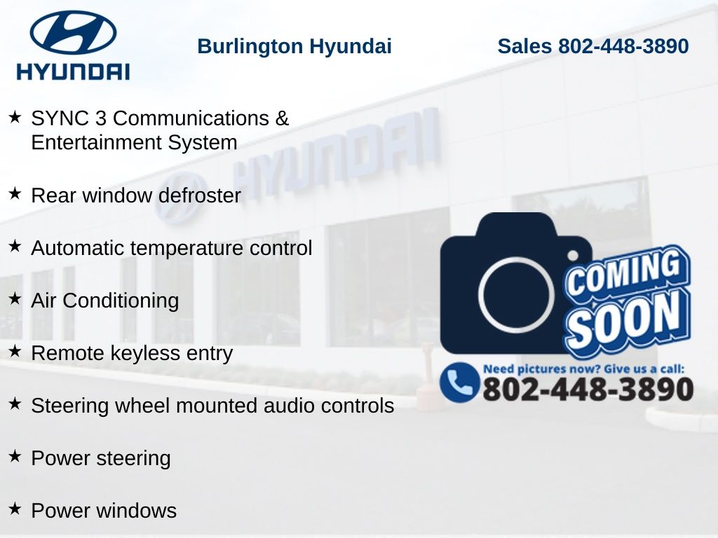 4-Wheel Disc Brakes, ABS brakes, Air Conditioning, Alloy wheels, Auto High-beam Headlights, Automatic temperature control, Brake assist, Compass, Delay-off headlights, Driver vanity mirror, Dual front impact airbags, Dual front side impact airbags, Electronic Stability Control, Emergency communication system: SYNC 3 911 Assist, Four wheel independent suspension, Front License Plate Bracket, Front reading lights, Fully automatic headlights, Heated door mirrors, Illuminated entry, Knee airbag, Low tire pressure warning, Occupant sensing airbag, Outside temperature display, Overhead airbag, Panic alarm, Passenger vanity mirror, Power door mirrors, Power steering, Power windows, Rear reading lights, Rear window defroster, Rear window wiper, Remote keyless entry, Speed control, Speed-sensing steering, Speed-Sensitive Wipers, Split folding rear seat, Steering wheel mounted audio controls, SYNC 3 Communications & Entertainment System, SYNC 3/Apple CarPlay/Android Auto, Tachometer, Telescoping steering wheel, Tilt steering wheel, Traction control, Trip computer, Unique Cloth Front Bucket Seats, Variably intermittent wipers.