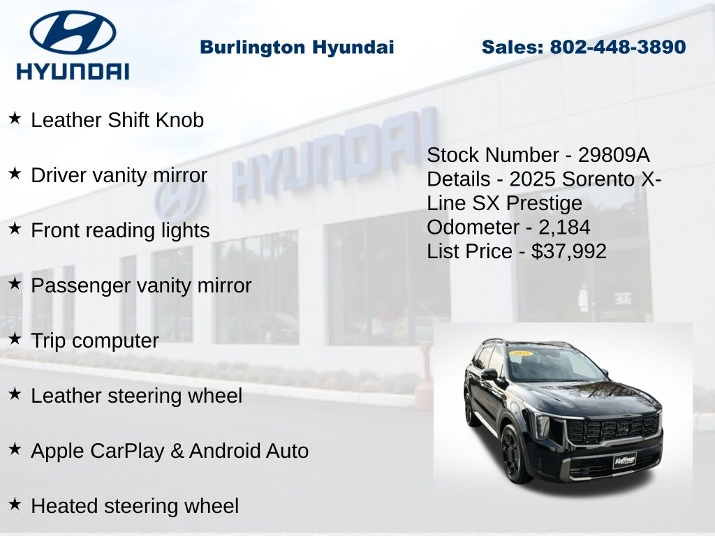 The 2025 Kia Sorento X-Line SX Prestige is available now for $39,500. Discover the perfect blend of performance, luxury, and innovation that will redefine your driving experience. Contact us to learn more and secure your opportunity to own this exceptional SUV.