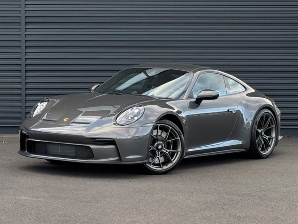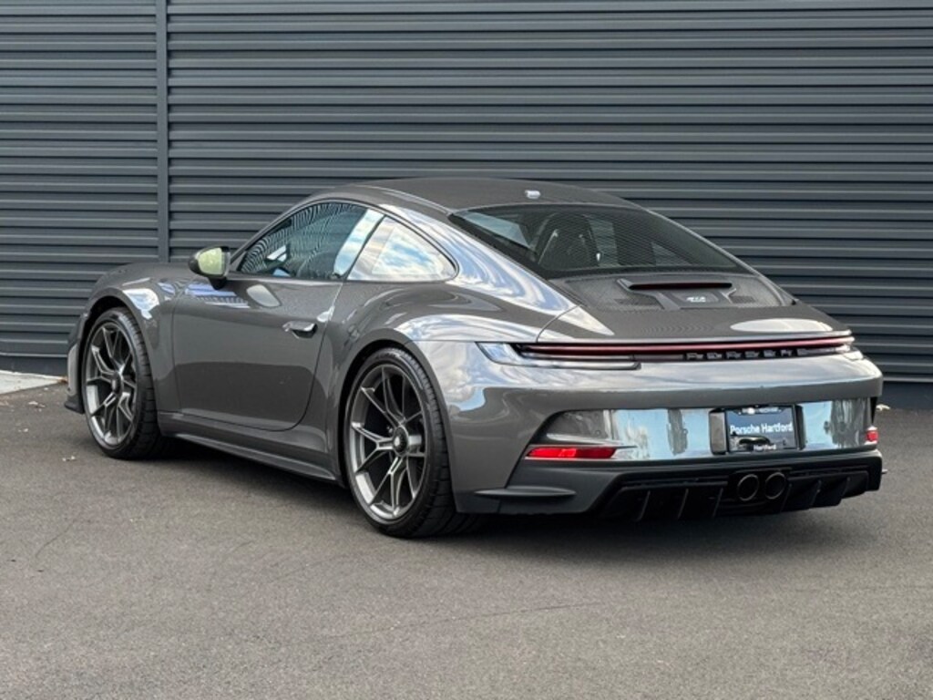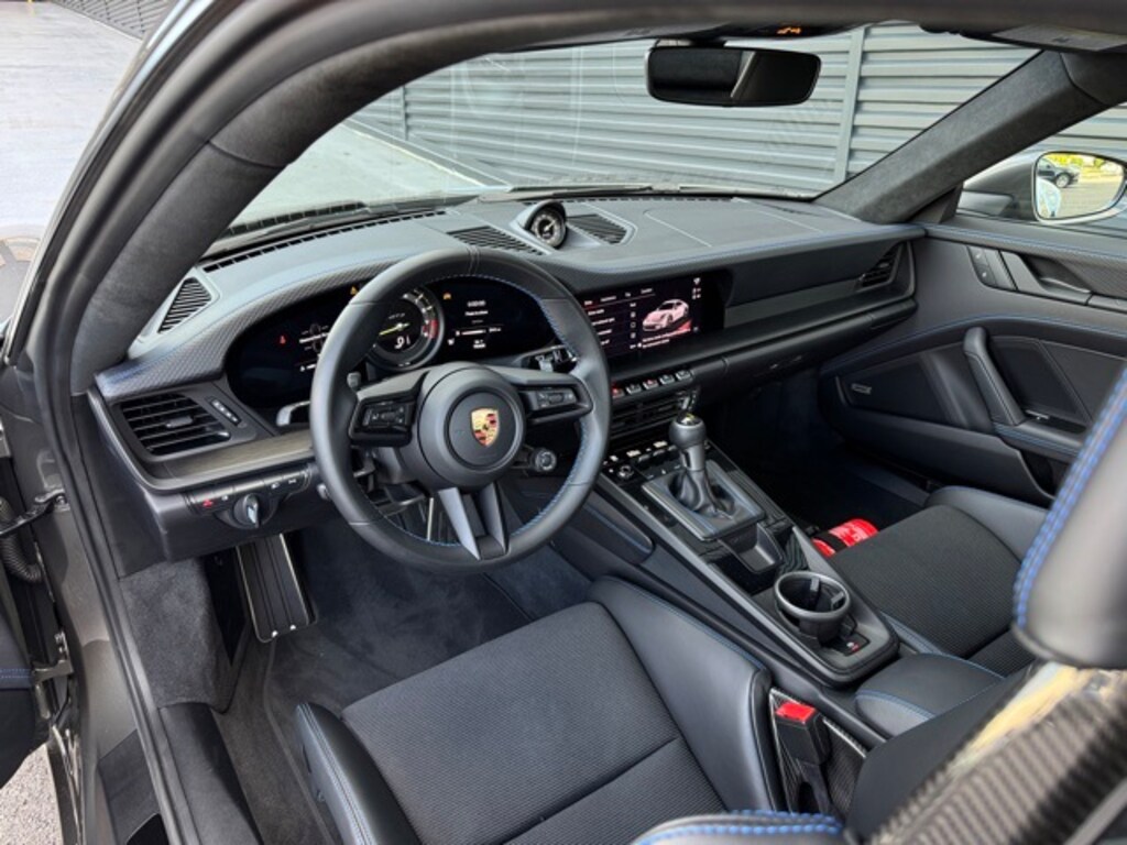 Dashboard with Deviated Stitching - Speed Blue, Rear Side Panel with Deviated Stitching (Coupe Only) - Speed Blue, Center Console Lid with Deviated Stitching - Speed Blue, Knee Pad with Deviated Stitching - Speed Blue, Door Panel with Deviated Stitching - Speed Blue, Color Selection for Stitching in Deviated Color - Speed Blue, Auto-Dimming Mirrors with Integrated Rain Sensor, Preparation for Porsche Dashcam (Front and Rear), 23.7 Gal. Extended Range Fuel Tank, 4-Way Sport Seats Plus, 4-Wheel Disc Brakes, 8 Speakers, Adaptive suspension, Air Conditioning, Alloy wheels, Ambient Lighting, Automatic temperature control, BOSE Surround Sound System, Brake assist, Brake Calipers in High Gloss Black, Bumpers: body-color, Chrono Package, Delay-off headlights, Deviated Stitching Interior Package, Driver door bin, Driver vanity mirror, Dual front impact airbags, Dual front side impact airbags, Electronic Stability Control, Fire Extinguisher, Four wheel independent suspension, Front anti-roll bar, Front Axle Lift System, Front Bucket Seats, Front Center Armrest, Front dual zone A/C, Front Protection Film, Front reading lights, Full Bucket Seats, Fully automatic headlights, Garage door transmitter: HomeLink, Heated door mirrors, Heated front and rear seats, Illuminated entry, Leather Shift Knob, Leather steering wheel, Leather/Fabric Seat Trim, LED Headlights w/PDLS, Low tire pressure warning, Navigation system: Porsche Communication Management (PCM), Occupant sensing airbag, Outside temperature display, Overhead airbag, Overhead console, Park Assist (Front & Rear) Incl. Surround View, Passenger door bin, Passenger vanity mirror, Porsche Ceramic Composite Brake (PCCB), Porsche Communication Management, Power door mirrors, Power driver seat, Power passenger seat, Power steering Plus, Power windows, Radio data system, Rear anti-roll bar, Rear fog lights, Rear ParkAssist, Rear window defroster, Remote keyless entry, Roof Lining in Race-Tex, Security system, Speed control, Speed-sensing steering, Spoiler, Sport steering wheel, Steering wheel mounted audio controls, Tachometer, Telescoping steering wheel, Tilt steering wheel, Touring Package in Black, Traction control, Trip computer, Variably intermittent wipers, Wheels: 20" Front/21" Rear 911 GT3. Clean CARFAX. Agate Grey Metallic 2023 Porsche 911 GT3 Touring RWD 7-Speed Porsche Doppelkupplung (PDK) 4.0L H6 DOHC 24V LEV3-LEV160 502hp