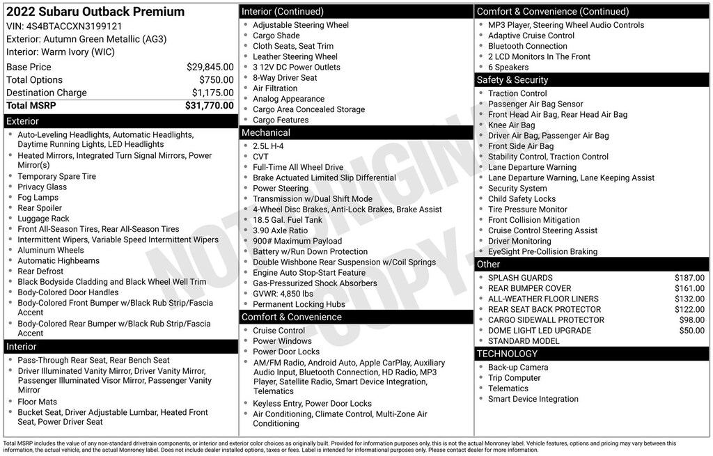 We recently retired and purchased a 2024 Outback Premium and love it! It’s got all the “bells & whistles” we need, plus the safety and reliability of a Subaru. We like to drive up to Lake Tahoe a lot and appreciate the AWD and “X Mode” for slippery driving conditions. - 5.0